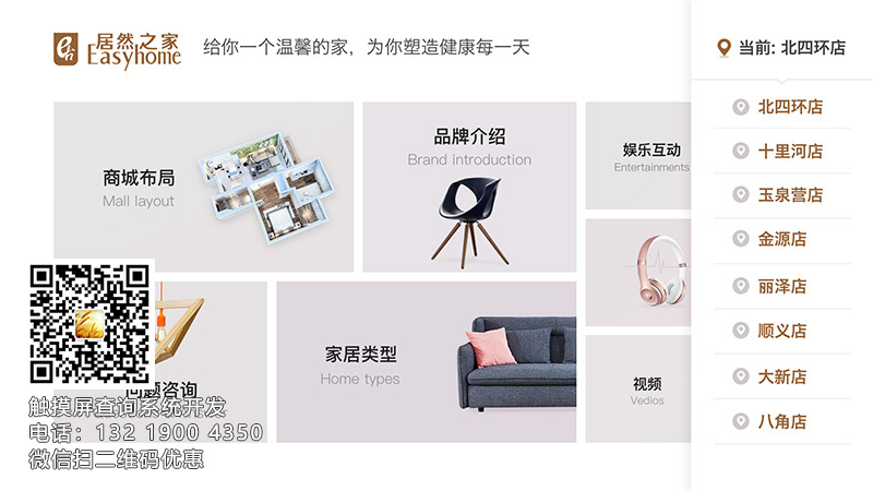 頁面的首頁以及整體的布局更加符合用戶的操作習性,以簡潔的展示方式,更加直觀的用戶進行使用,及時獲取想要信息,頁面的背景圖片、功能按鈕能夠隨意得進行更換、拖動擺放,是觸摸屏軟件技術開發的水平更加成熟,有效的形成較好的宣傳與推廣的效果。
