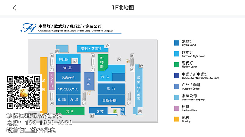 Toucher商場觸摸屏導視系統:指表現商場功能區域的空間結構的環境信息,包括導購圖、指示牌、地面標記等。完善的商場導向標志系統能夠讓消費者了解整個商場的結構布置與流動走向,并進行相應的功能引導。